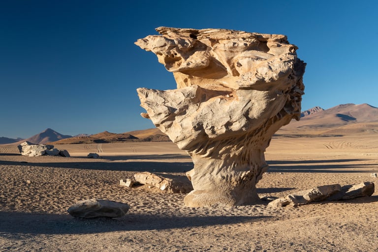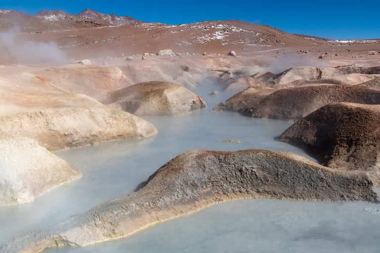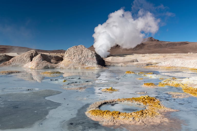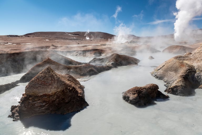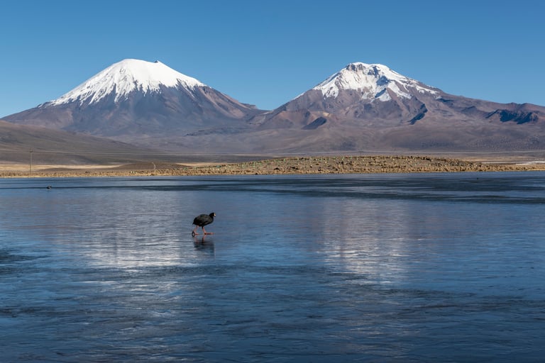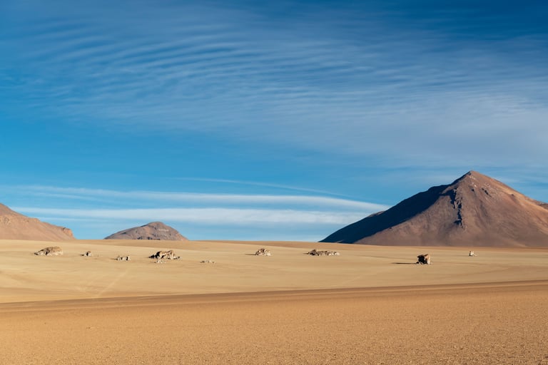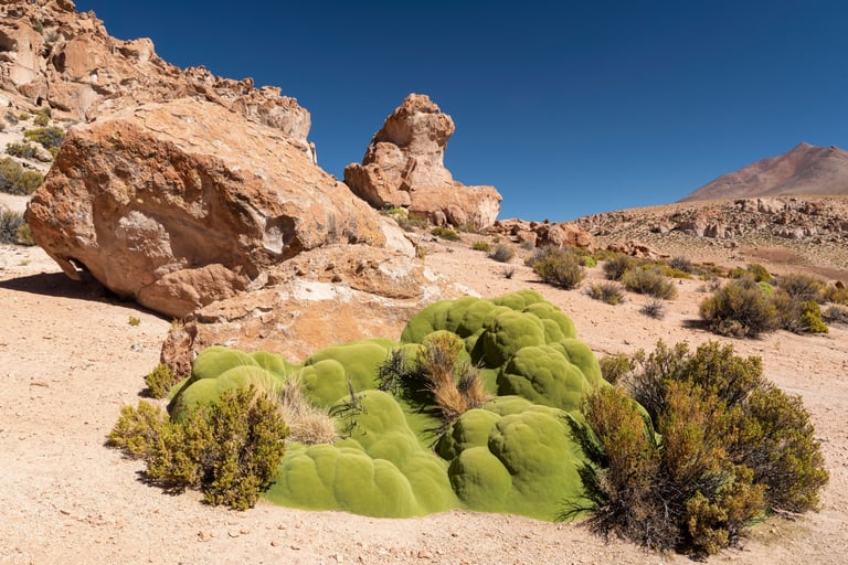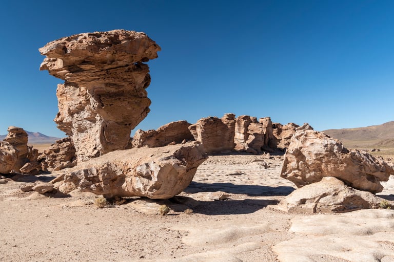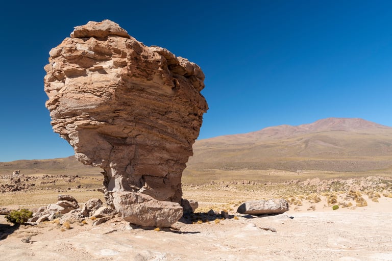 Bolivia's salt flats, primarily the vast Salar de Uyuni, are the world's largest salt pan, a surreal, white expanse formed from prehistoric lakes on the Altiplano, famous for mirror-like reflections in the wet season, optical illusions, and unique sights like cacti-covered islands and a train graveyard. Salar de Uyuni is one of South America’s most phenomenal attractions. The vast expanse of white, glistening salt stretches across 10,582 kilometers of the Altiplano and can even be seen from space. Layers of salt are sandwiched between sedimentary deposits that reach a great depth of 10m in the centre of the flat. Laguna Colorada, (translated to Red Lagoon), is a shallow, hypersaline lake in the remote southwestern region of the Altiplano, within the Eduardo Avaroa Andean Fauna National Reserve in Bolivia and located at an elevation of approximately 4,278 metres (14,000 ft) above sea level