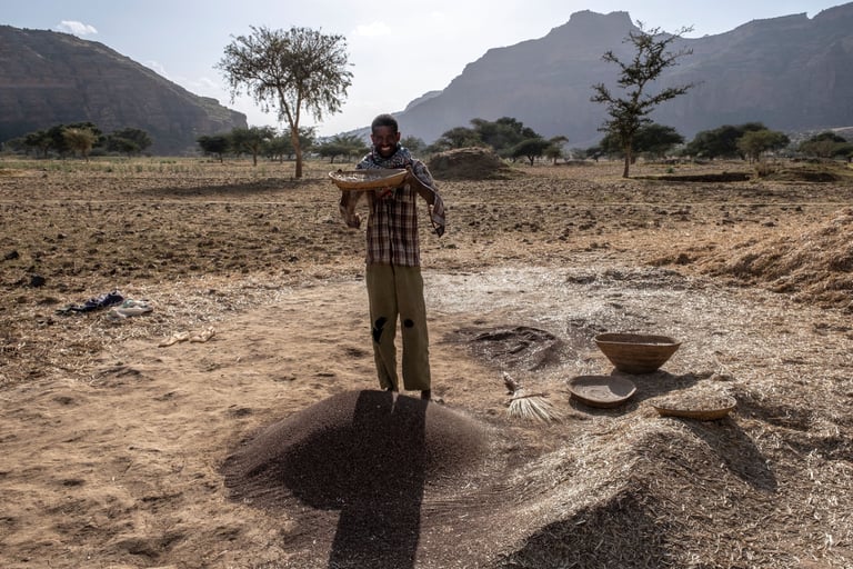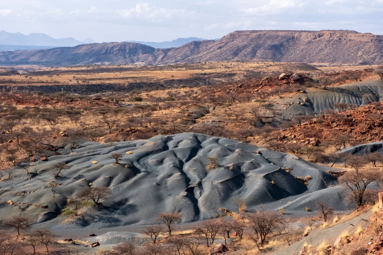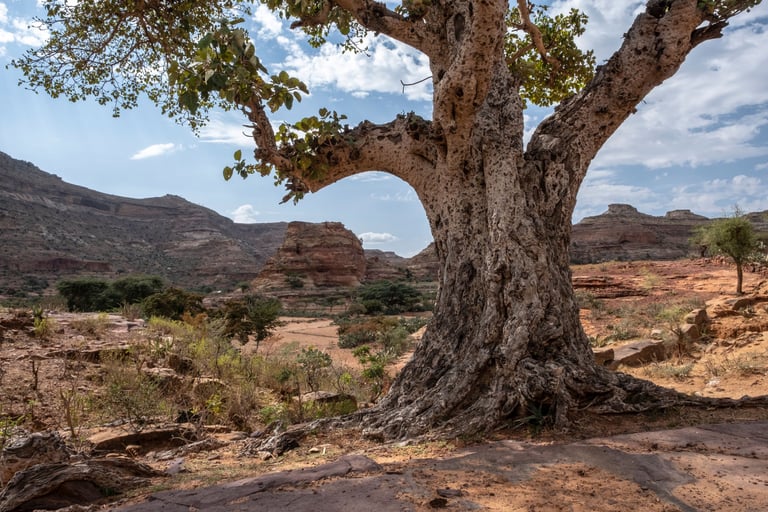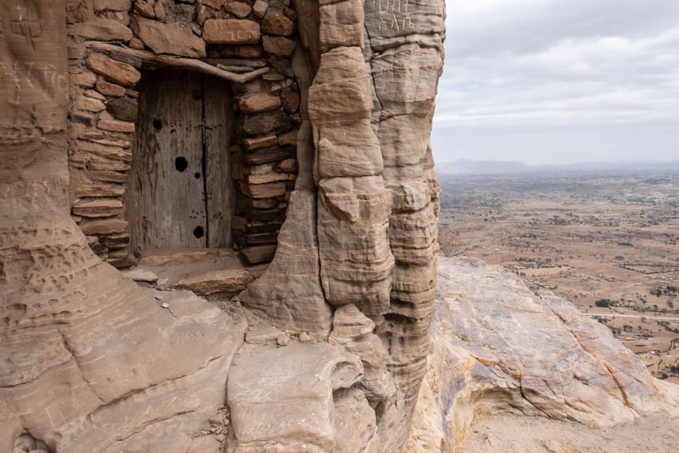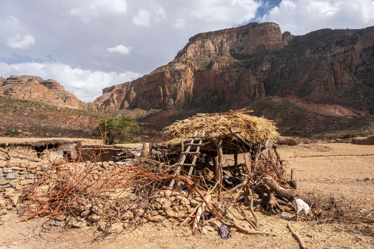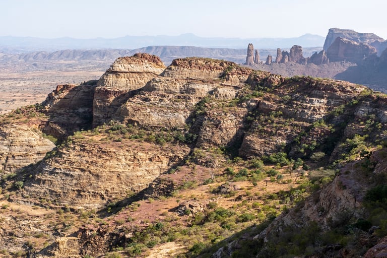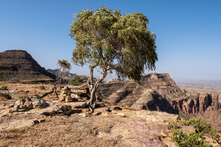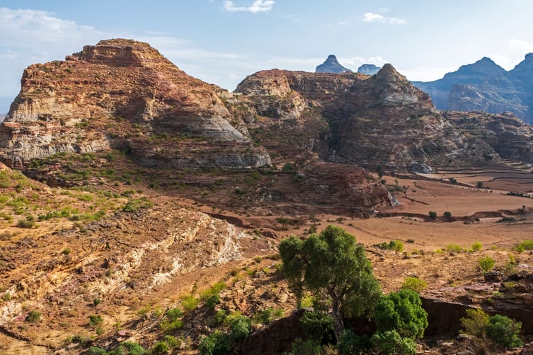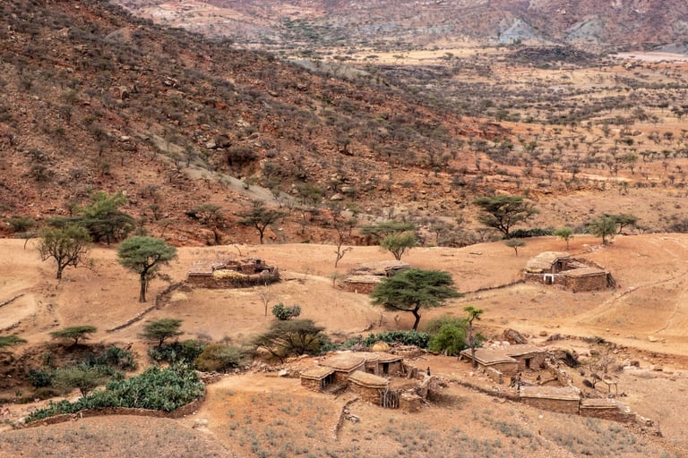The Gheralta Mountains in Ethiopia's Tigray region are famous for their dramatic sandstone cliffs, ancient rock-hewn churches (like Abune Yemata Guh, Maryam Korkor), and opportunities for adventurous trekking, offering a unique blend of stunning scenery, early Christian history, and cultural immersion with local villages, making it a prime destination for hikers and history enthusiasts