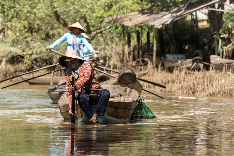 French Indochina is a former French colony in Southeast Asia (1887-1954), which included the territories of modern Vietnam, Cambodia and Laos, created to govern the region and its resources, but ended with the collapse of the colony after national liberation movements and wars. Mekong is a great river of Indochina, one of the longest in Asia (about 4,500 km), flowing through China, Myanmar, Laos, Thailand, Cambodia and Vietnam, known for its rich culture and life, feeding huge areas of rice and being an important transport route and source of food.