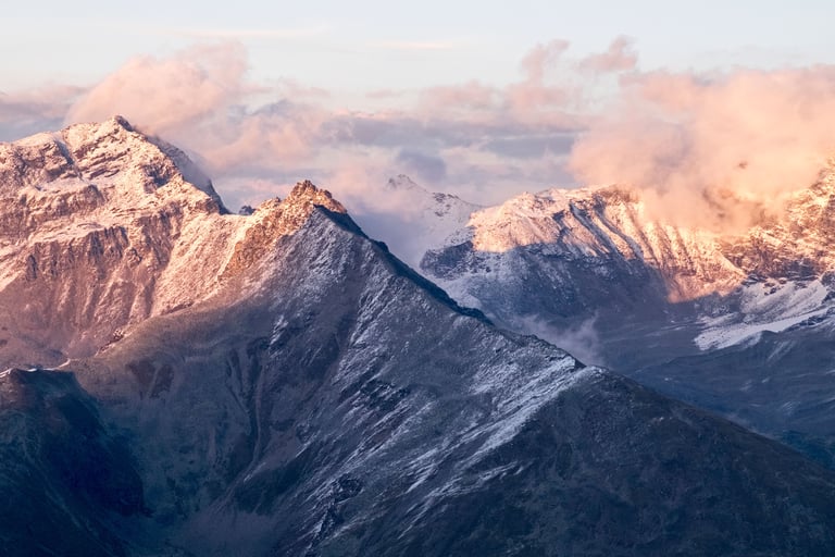 The Dolomites are a mountain range in northeastern Italy, part of the Southern Limestone Alps and included in the UNESCO World Heritage List. The highest point is Mount Marmolada, height 3342–3343 m. The mountains are located on the territory of Trentino-Alto-Adige, Veneto and Friuli-Venezia-Giulia. Their name comes from the mineral and rock of the dolomite, named after the French geologist Deode de Dolomieu, who was the first to explore the region in the 18th century. The phenomenon of Enrosadir (Alpenglow) - at sunrise and sunset, the peaks are painted in pink, fiery red and purple tones due to the reflection of light from light rocks.