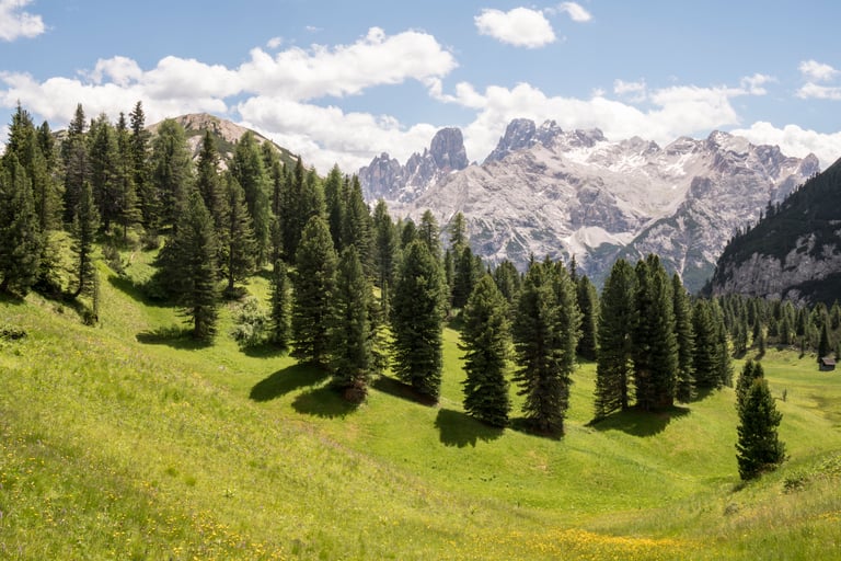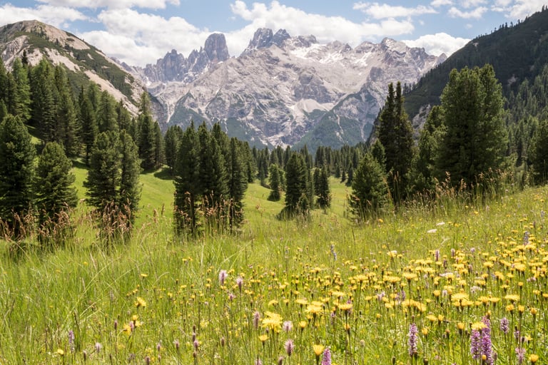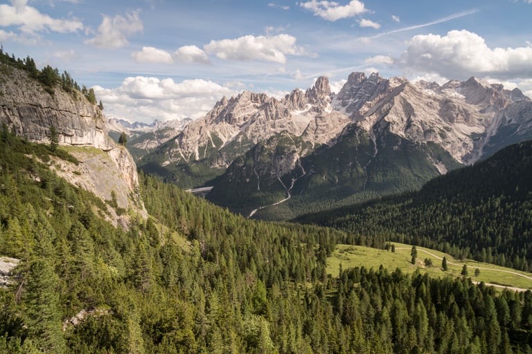 The Dolomites are a mountain range in northeastern Italy, included in the UNESCO World Heritage List in 2009. This is one of the most picturesque mountainous regions in the world, known for its sheer rocks made of light dolomite, which turns pink and red at sunset (the phenomenon of "enrosadir"). The highest point: Mount Marmolada (3343 m), where the largest glacier in the region is located. The region is very popular among trekkers and climbers.