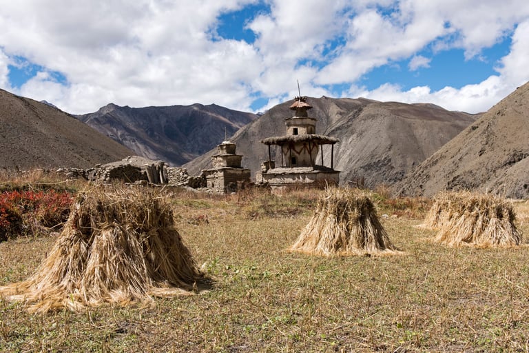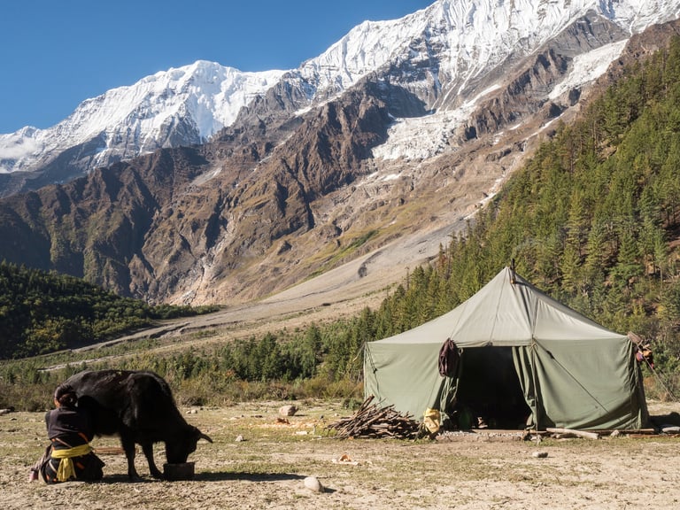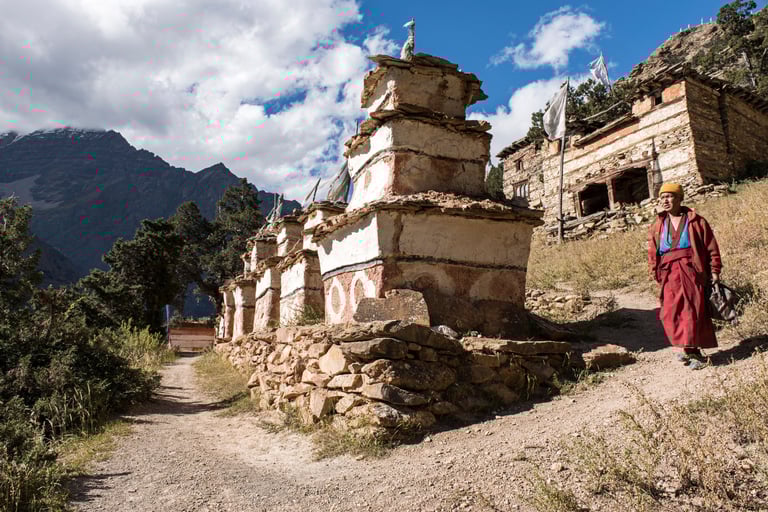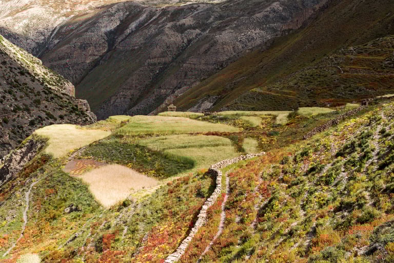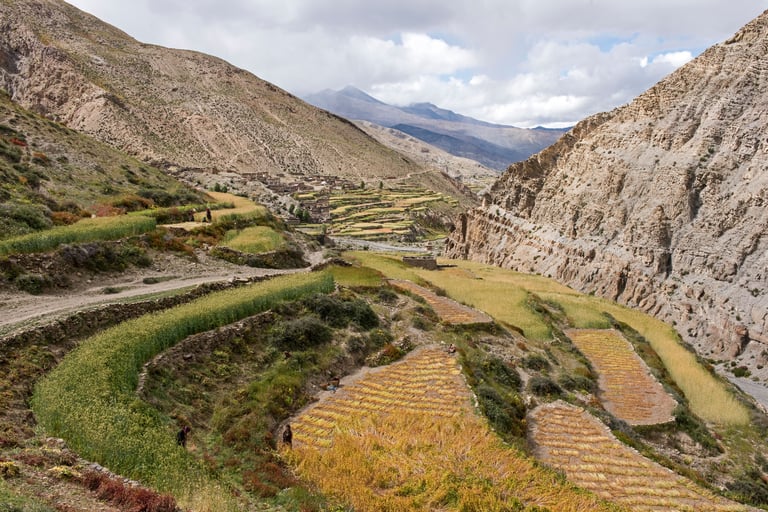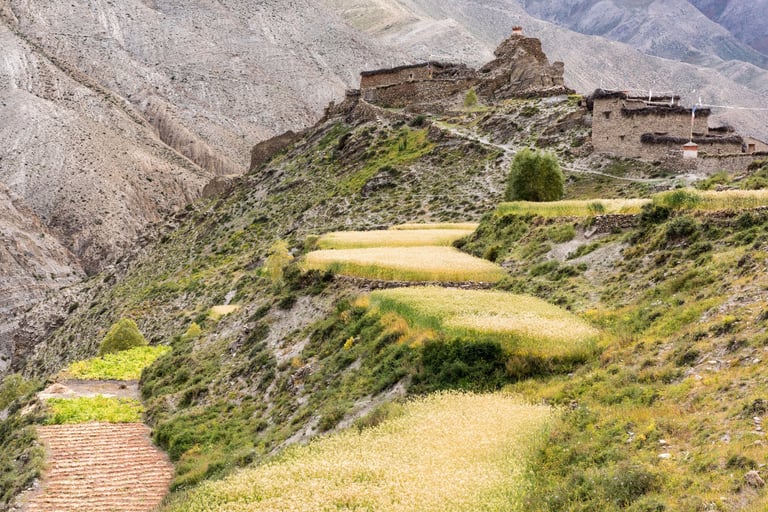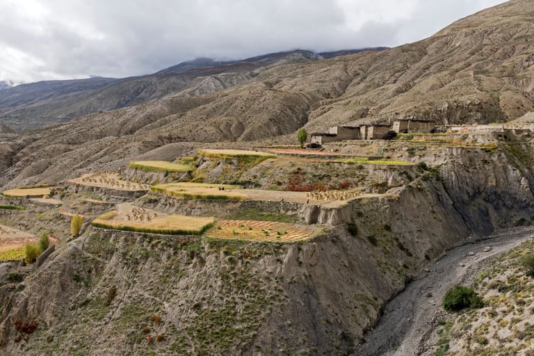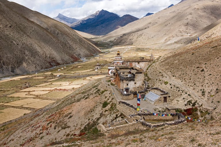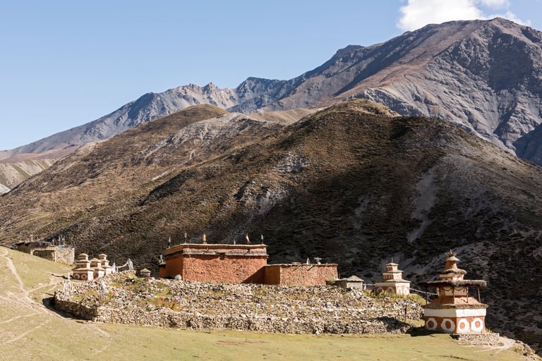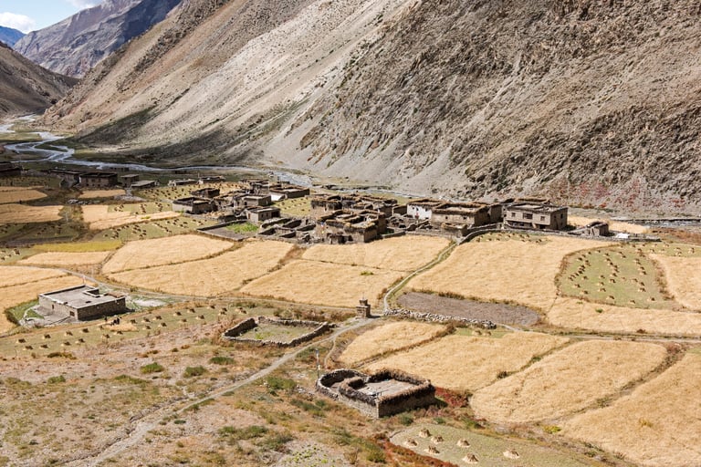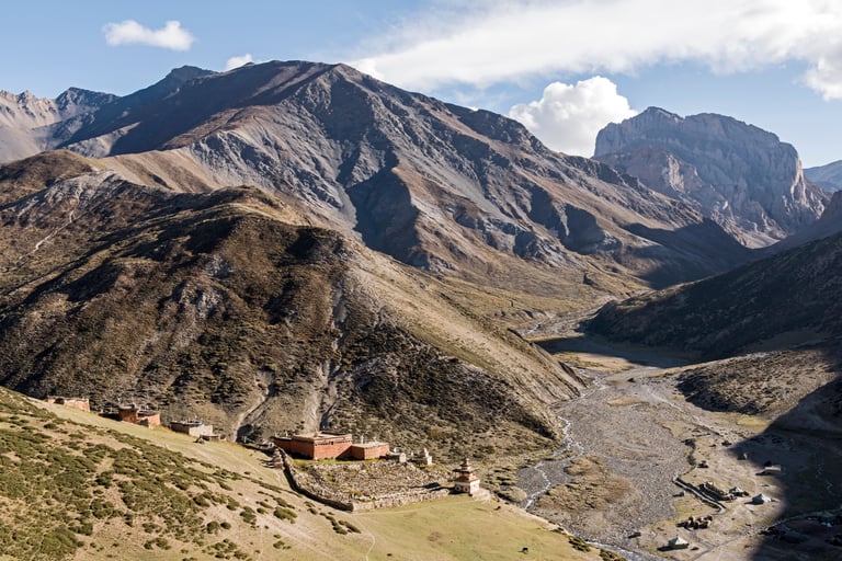 Upper Dolpo is a remote, high-altitude region in the Dolpa District of western Nepal, bordered by the Tibetan Plateau. Known for its pristine Tibetan culture and arid, trans-Himalayan landscapes, it is one of the most secluded and physically demanding trekking destinations in the country. The region is a "living museum" of ancient Tibetan Buddhist and Bon (pre-Buddhist) traditions. Dolpo region is inhabited by the Dolpo-pa, who maintain a traditional agro-pastoral lifestyle and a centuries-old salt trade with Tibet.