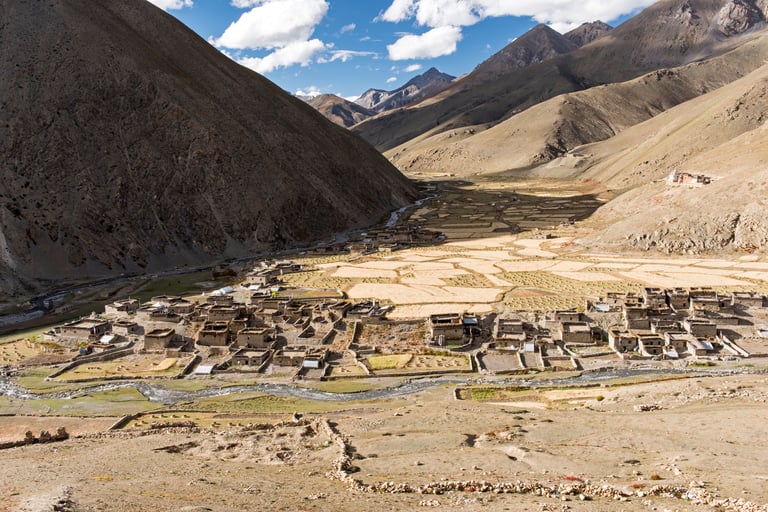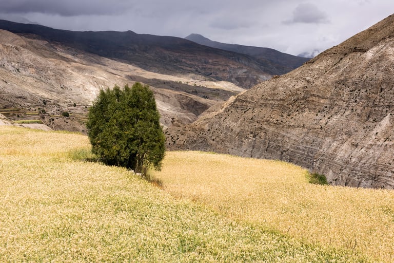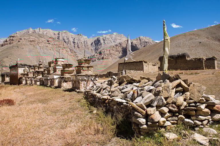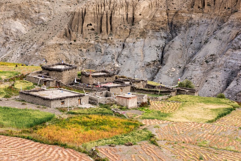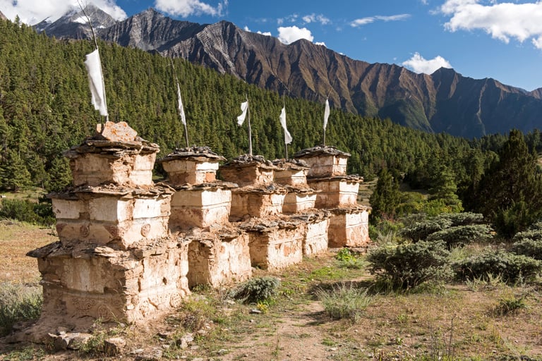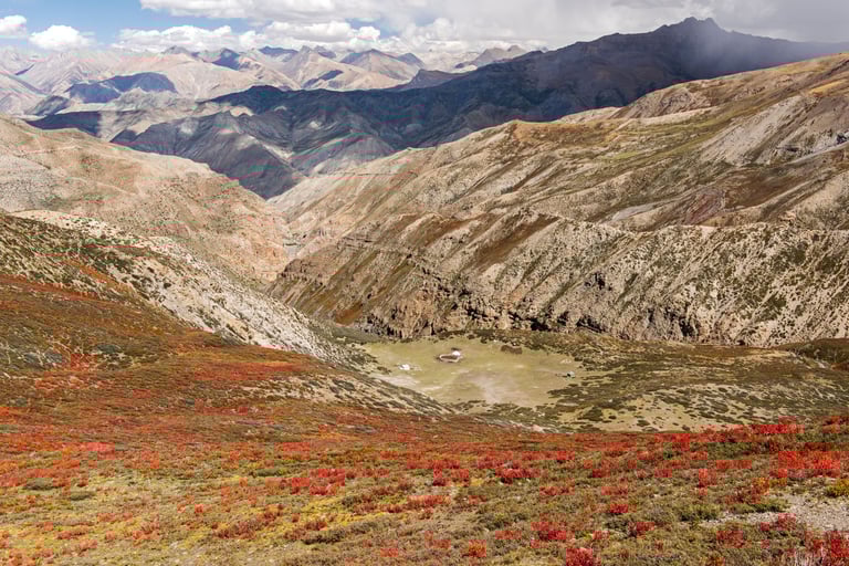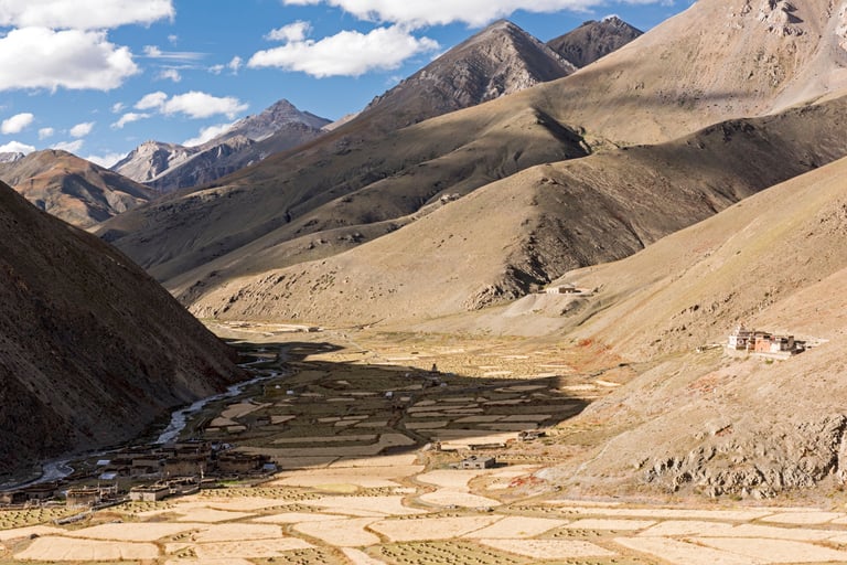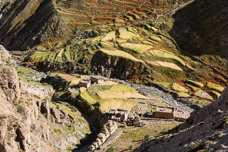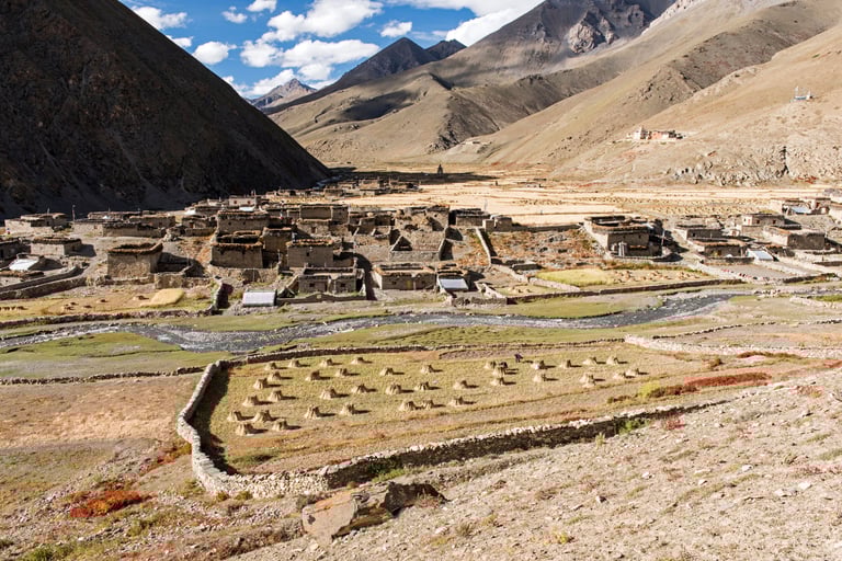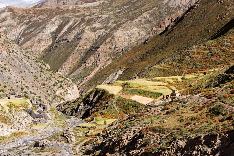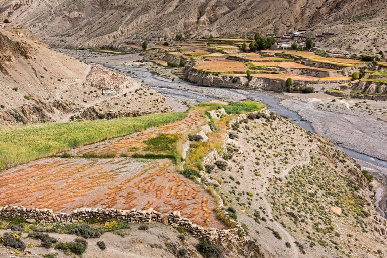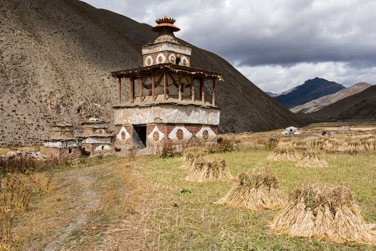 Upper Dolpo is a remote, high-altitude region in the Dolpa District of western Nepal, bordered by the Tibetan Plateau. Known for its pristine Tibetan culture and arid, trans-Himalayan landscapes, it is one of the most secluded and physically demanding trekking destinations in the country. The region is a "living museum" of ancient Tibetan Buddhist and Bon (pre-Buddhist) traditions. Dolpo region is inhabited by the Dolpo-pa, who maintain a traditional agro-pastoral lifestyle and a centuries-old salt trade with Tibet.