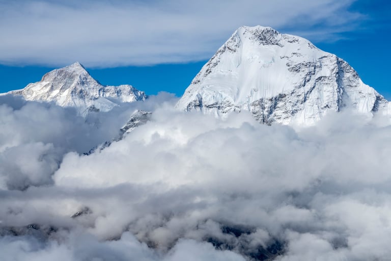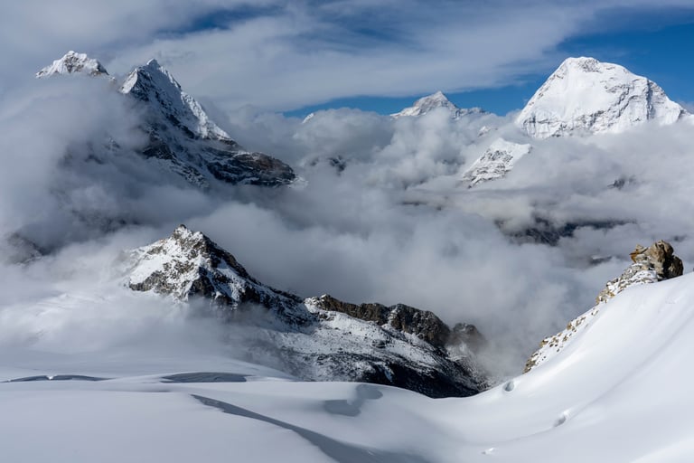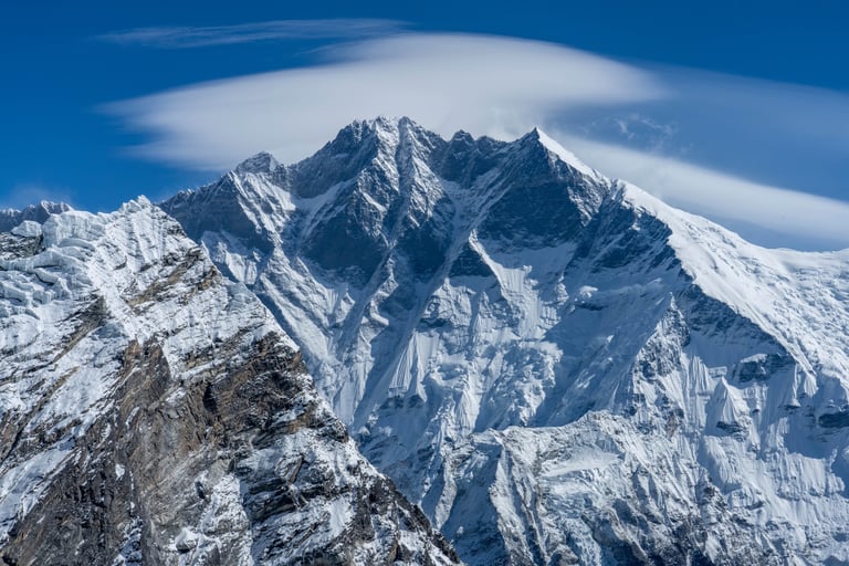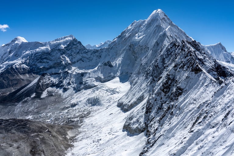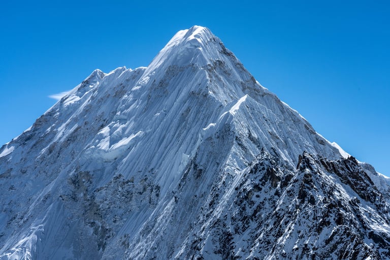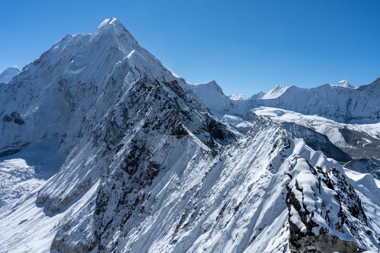 Mera Peak is a beautiful mountain peak in Nepal (height of 6476 meters) from which you can have a wonderful view of five of the six highest mountains in the world: Everest, Kanchenjunga, Lhotse, Makalu, Cho-Oyo. Mera Peak is 33 km from Mount Everest and it is uniq stand alone peak with one of the best Mount Everest views.