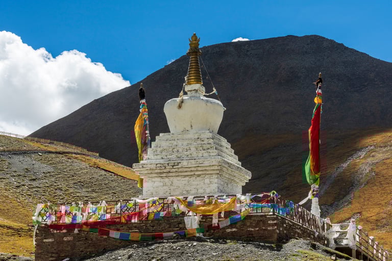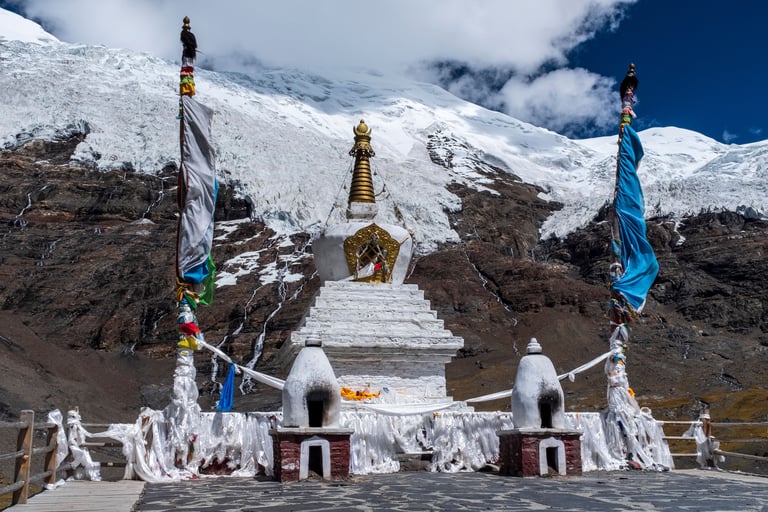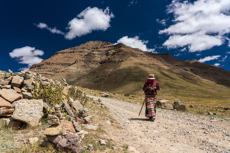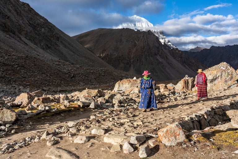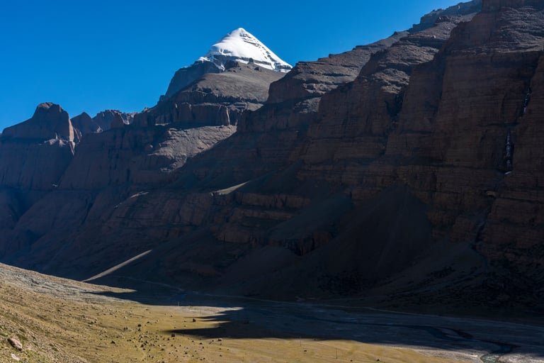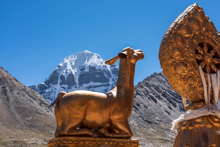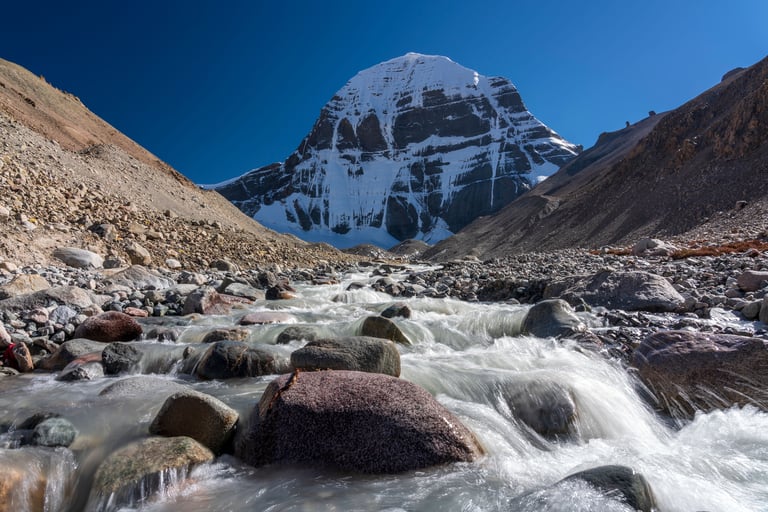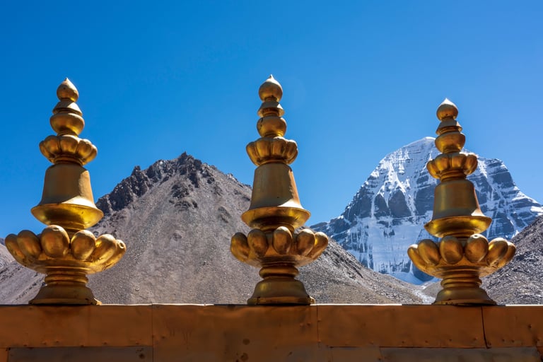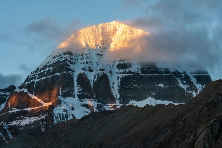 Kailas (Kailasha) is a sacred quadrilateral mountain in Tibet, revered by Hindus (the abode of Shiva), Buddhists, Jains and followers of the Bon religion, a symbol of the "axis of peace" and a center of pilgrimage, remaining unconquered due to religious and mystical reasons. Pilgrims make a bark (bypass) around the mountain to cleanse from sins, and its pyramidal shape and unusual properties attract spirituality seekers from all over the world. It is located at Western Tibetan plateau, China, near the border with Nepal. The great rivers India, Indus, Brahmaputra and Karnali originate from Kailas, which emphasizes its status as the "heart of the world". Every year, thousands of people make a "cora" - a 54-kilometer tour of the mountain, believing that 108 circles lead to enlightenment, and one circle erases sins.
