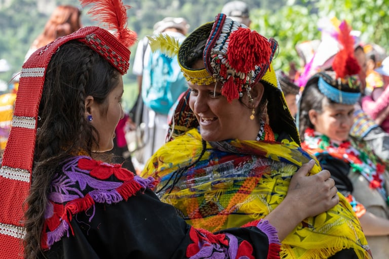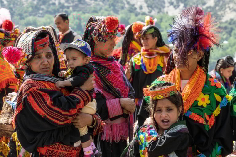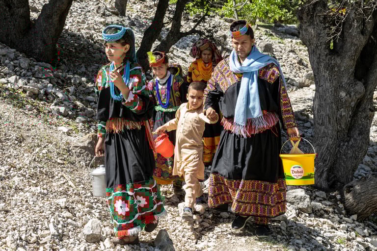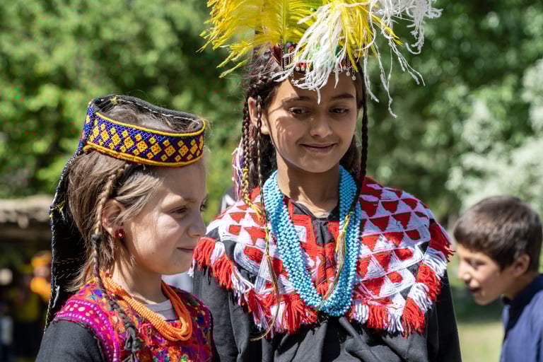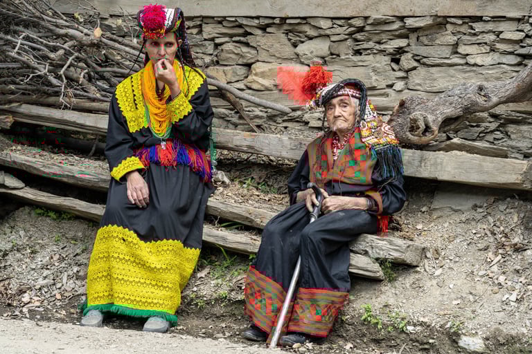 Tirich Mir is the highest mountain of the Hindu Kush range, and the highest mountain in the world outside of the Himalayas–Karakoram range, at 7,708 meters above sea level. It is located in the Chitral District of Khyber Pakhtunkhwa, Pakistan. The Kalasha Valleys are situated in Chitral District in northern Pakistan too. The valleys are surrounded by the Hindu Kush mountain range. The inhabitants of the valley are the Kalash people, who have a unique culture, language and follow a religion similar to the Historical Vedic religion.