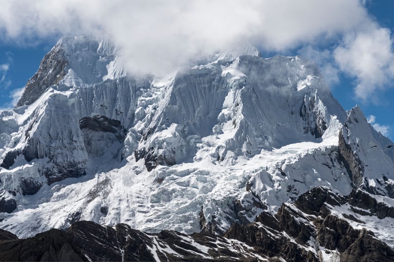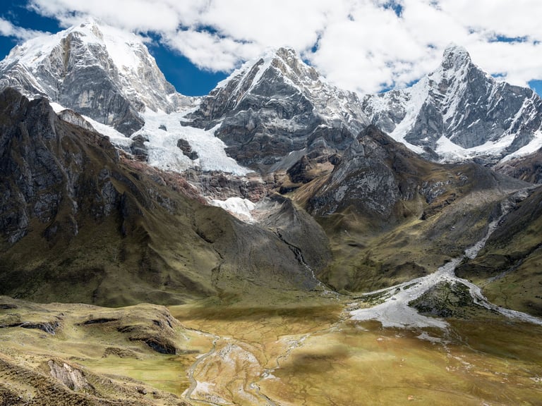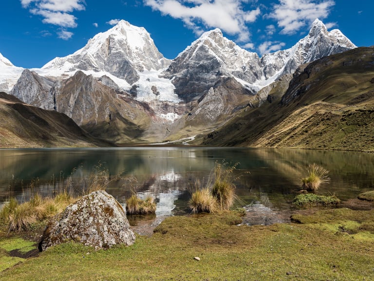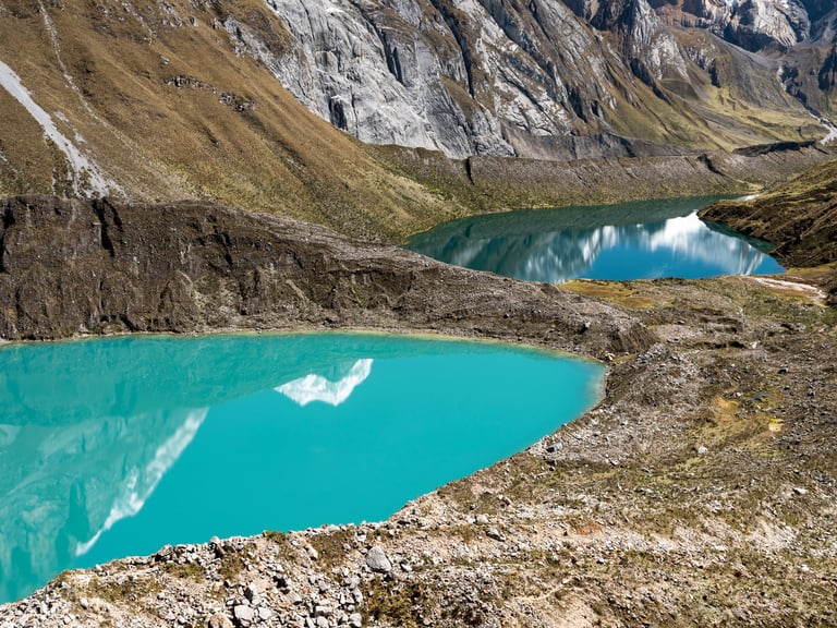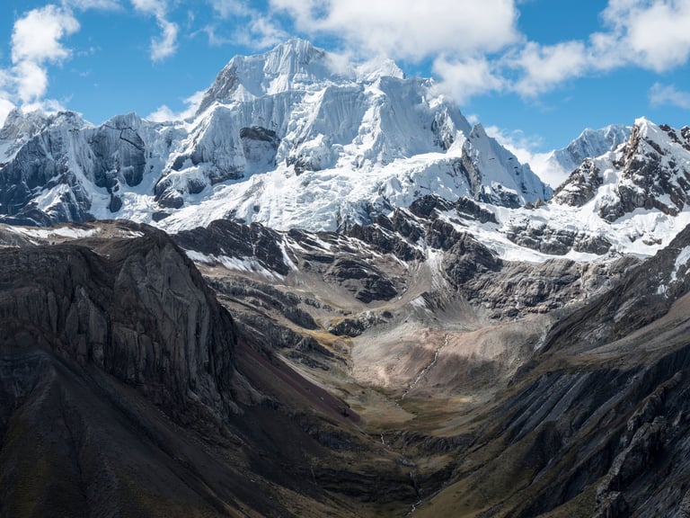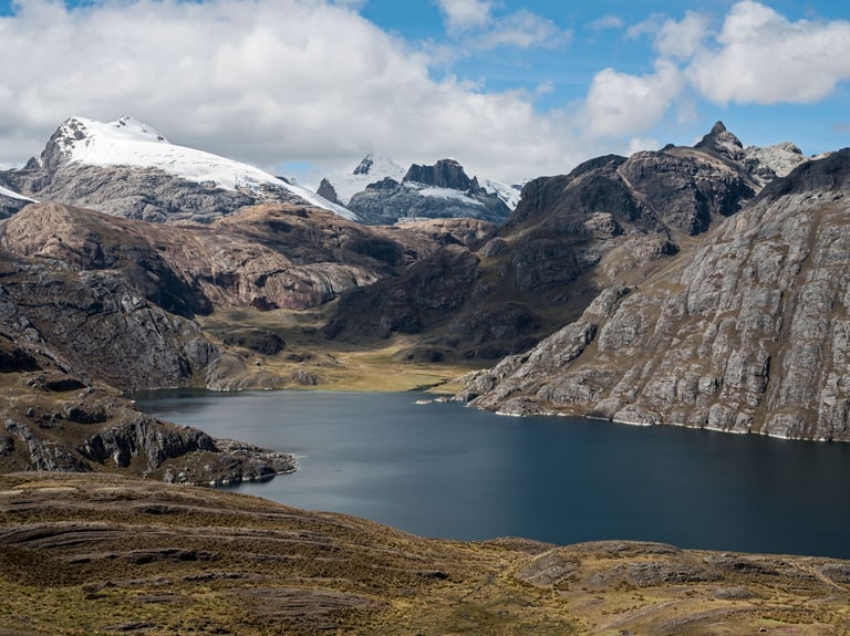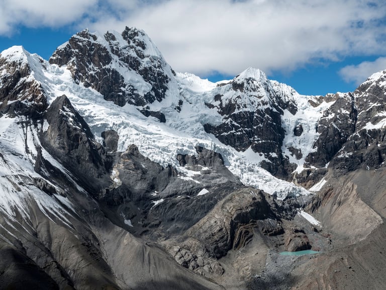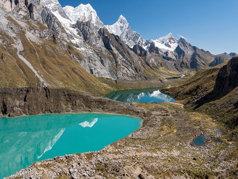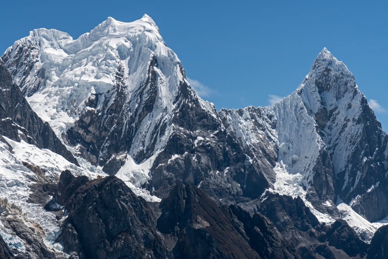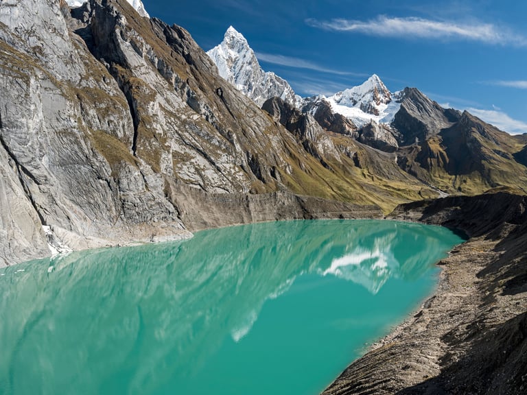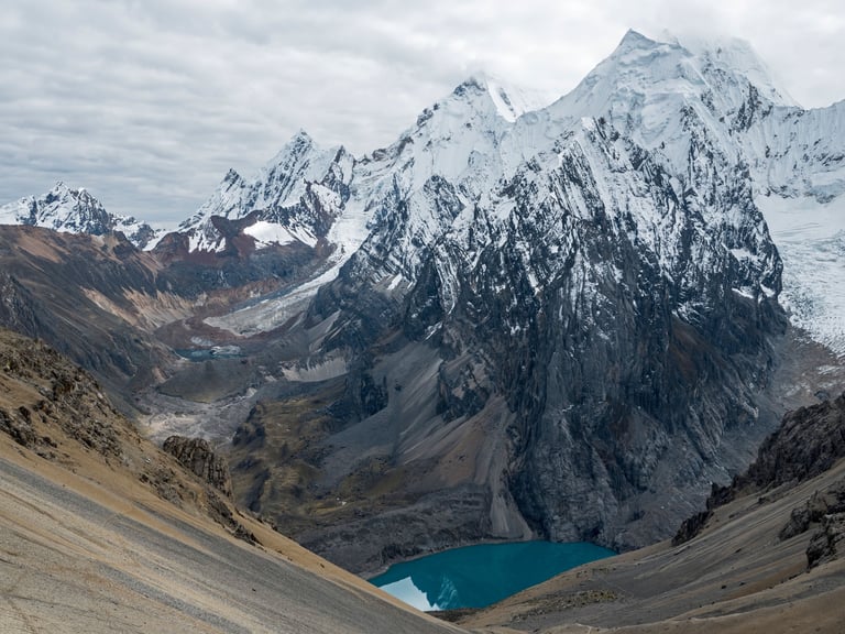 Huayhuash is an impressive mountain range in the Peruvian Andes, known for its breathtaking scenery, high snowy peaks (including Yerupajá, Peru's second highest mountain) and one of the most beautiful tracks in the world, Huayhuash Circuit, offering complex trails for trekking, mountaineering, glaciers, turquoise lakes and a unique experience of the high Andes. The ridge is located near the city of Huaras, which serves as a base for expeditions.