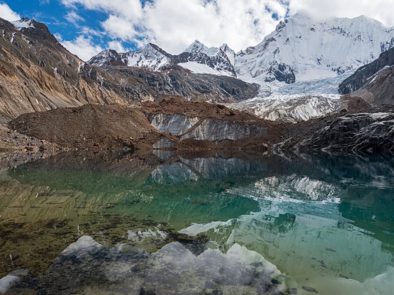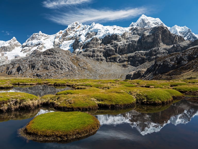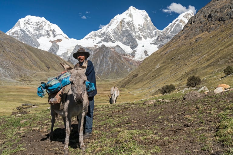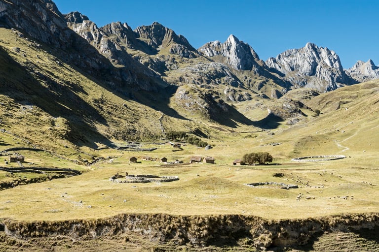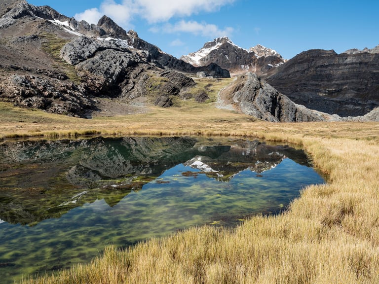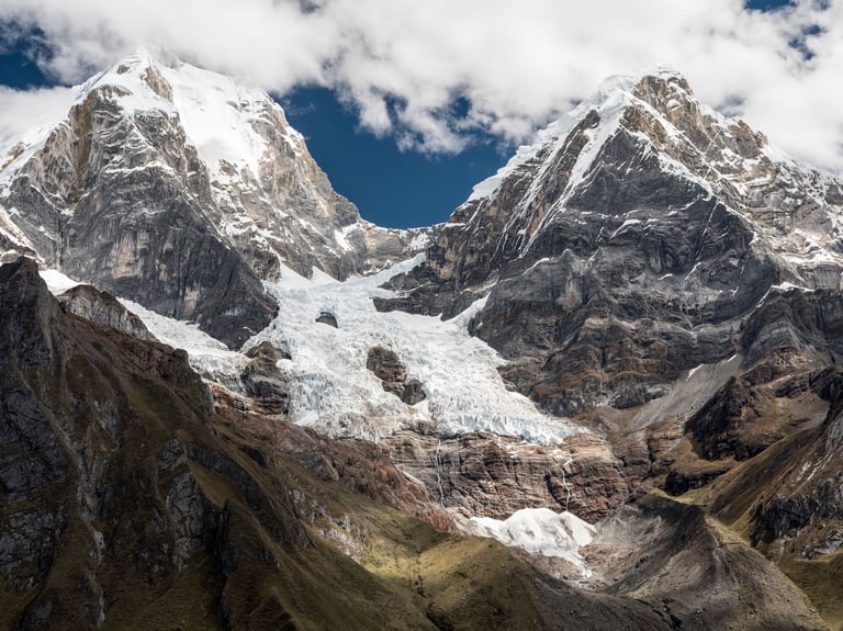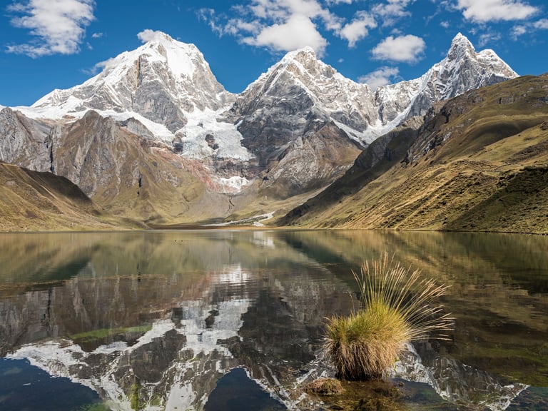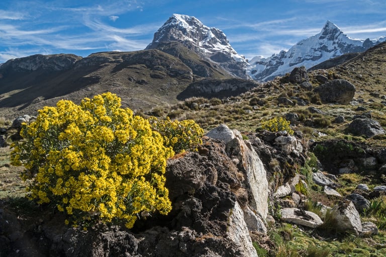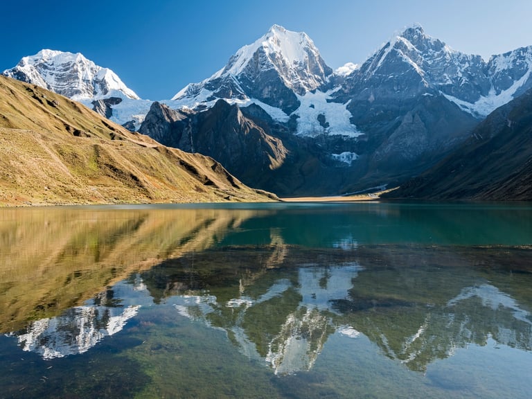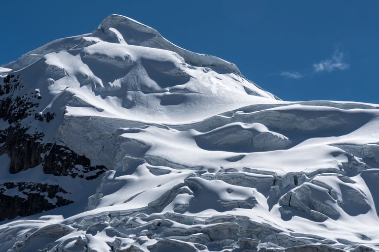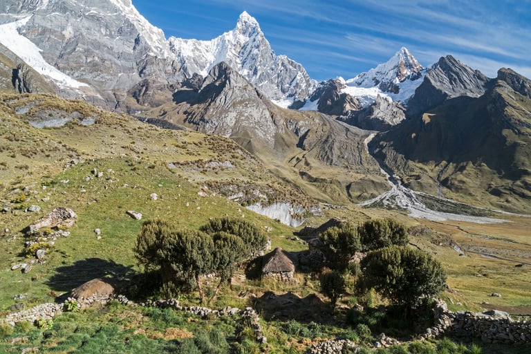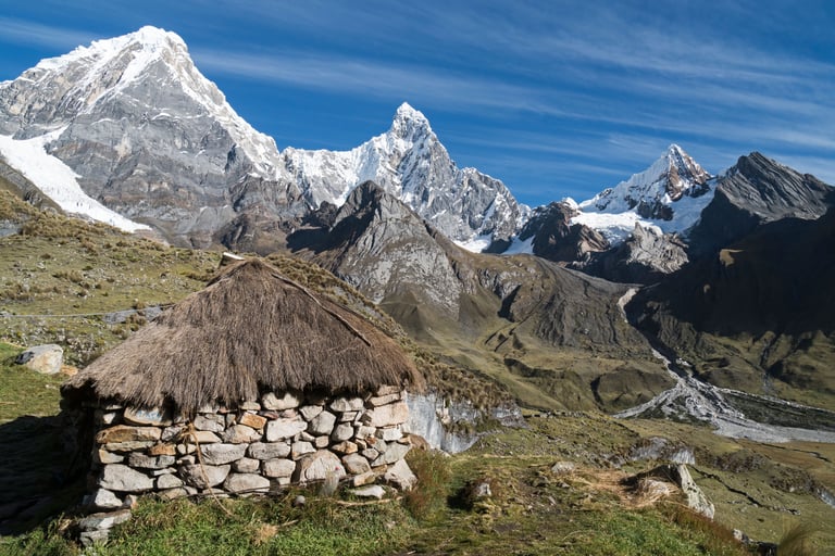 Huayhuash is an impressive mountain range in the Peruvian Andes, known for its breathtaking scenery, high snowy peaks (including Yerupajá, Peru's second highest mountain) and one of the most beautiful tracks in the world, Huayhuash Circuit, offering complex trails for trekking, mountaineering, glaciers, turquoise lakes and a unique experience of the high Andes. The ridge is located near the city of Huaras, which serves as a base for expeditions.