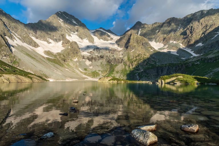 The Altai Mountains are a majestic Central Asian range spanning Russia, China, Mongolia, and Kazakhstan, known for stunning peaks (highest: Mt. Belukha), deep valleys, vast steppes, and rich biodiversity, including snow leopards, forming headwaters for major rivers like the Ob & Irtysh, and partly recognized by UNESCO as the "Golden Mountains of Altai" for unique vegetation zones and cultural heritage.