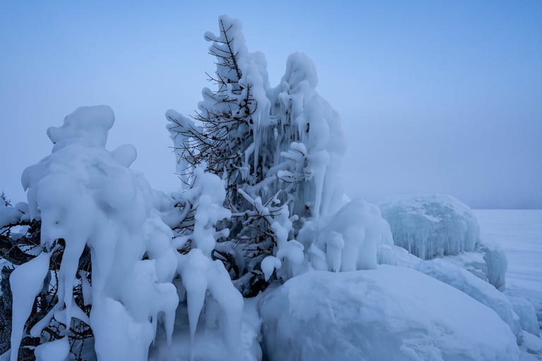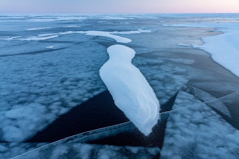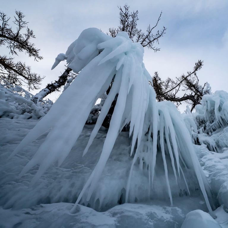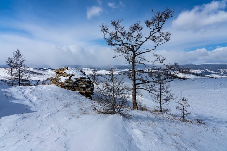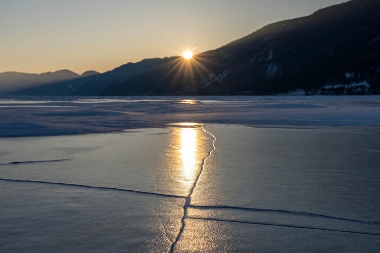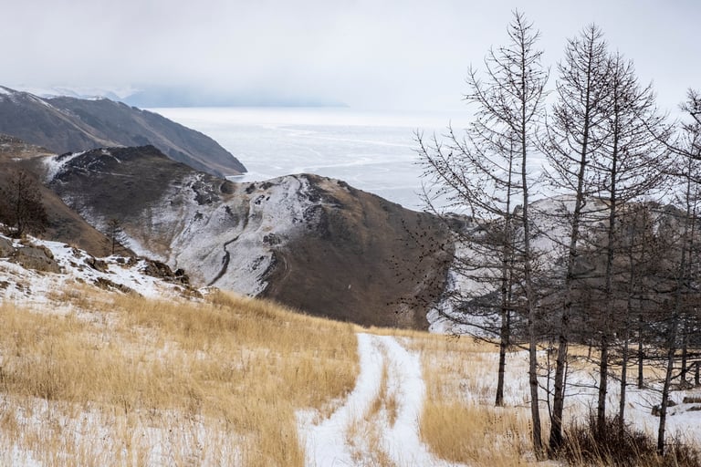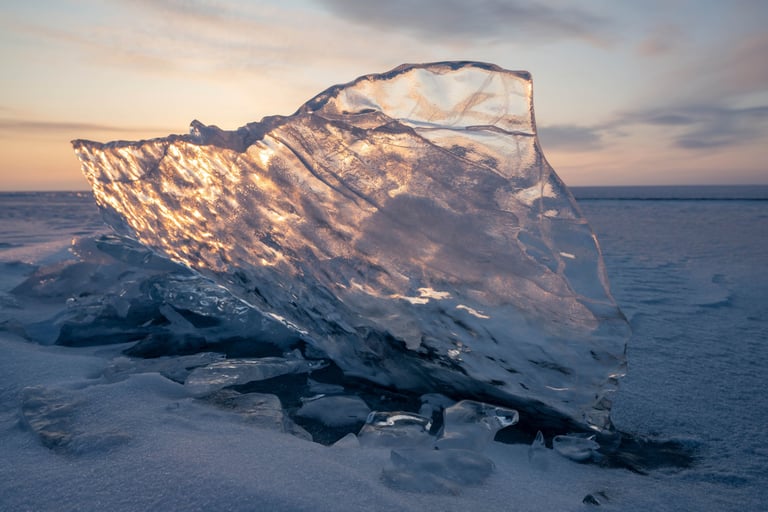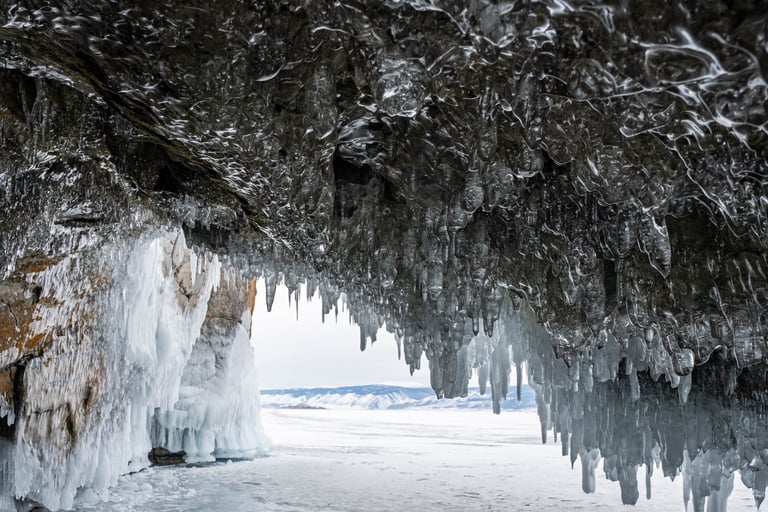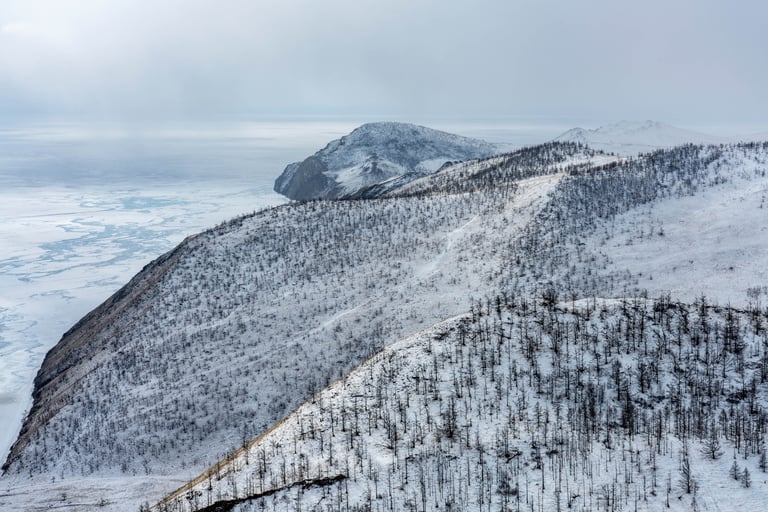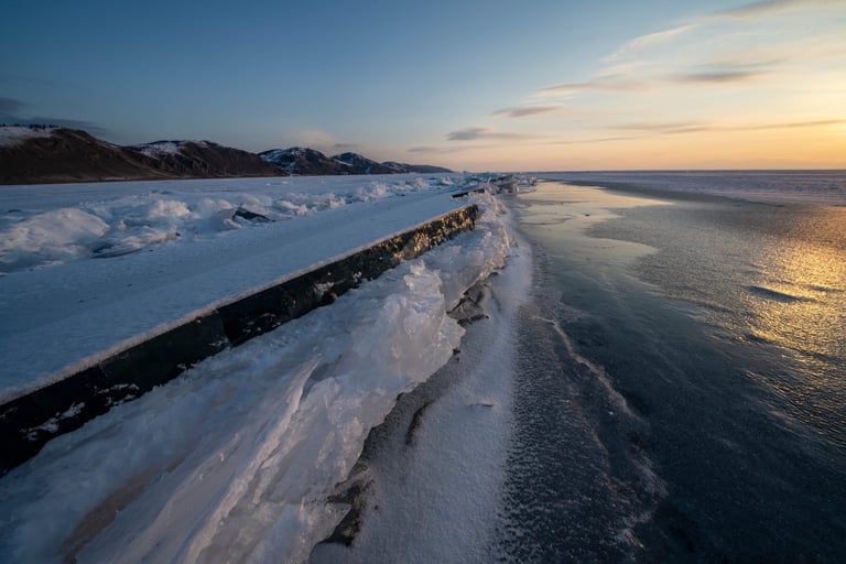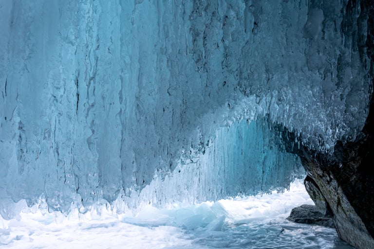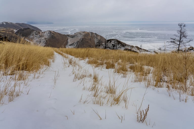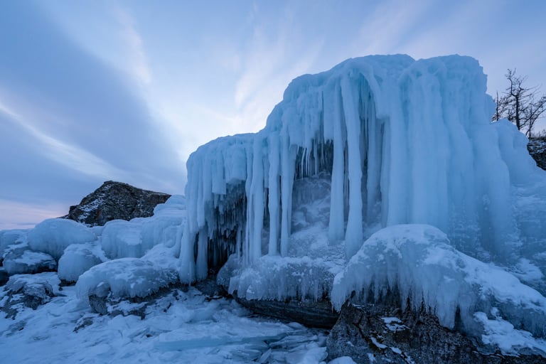 Baikal lake is situated in southern Siberia, Russia. Lake Baikal is in a rift valley, created by the Baikal Rift Zone. At 636 km long and 79 km wide, Lake Baikal is the deepest lake in the world at 1,642 metres . The lake is surrounded by mountains; the Baikal Mountains on the north shore, the Barguzin Range on the northeastern shore and the Primorsky Range stretching along the western shore. Baikal is especially beautiful in winter when it is covered with blue ice.