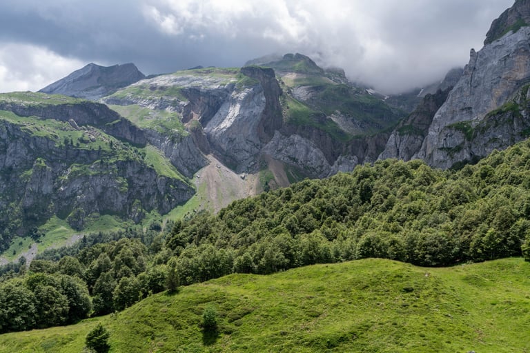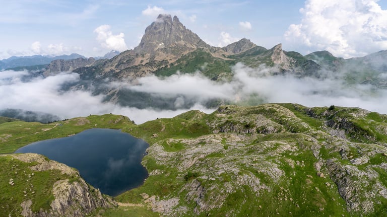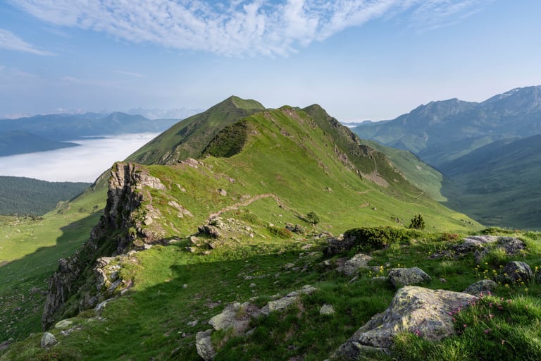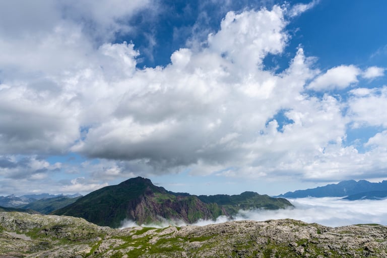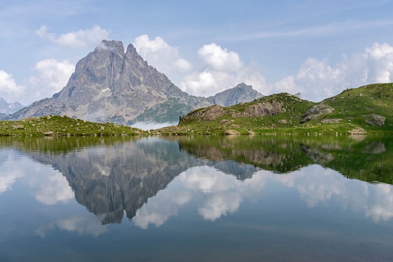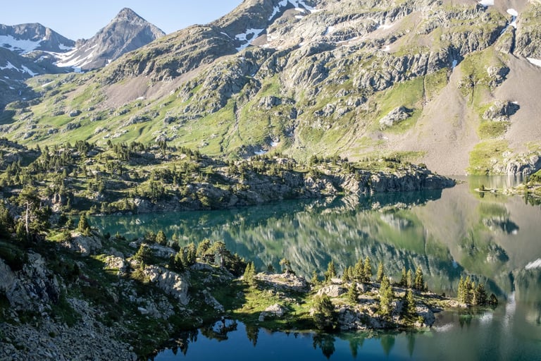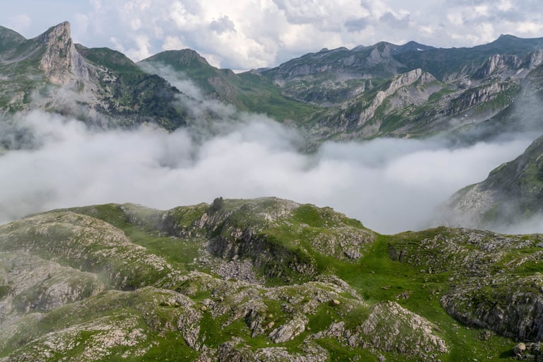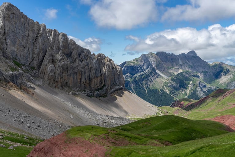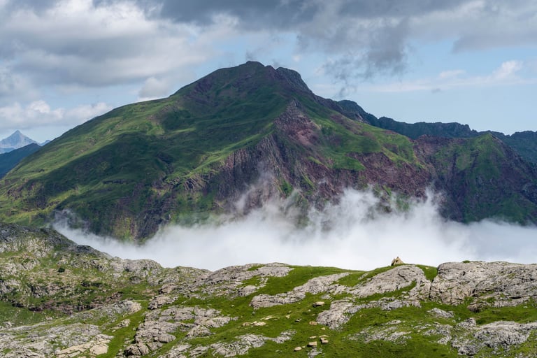 Pyrenees mountains range along the border between France and Spain. Their geological structure is uniq. Pyrenees connect Atlantic Ocean and Mediterranean Sea.