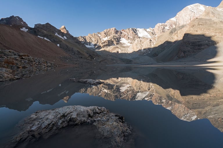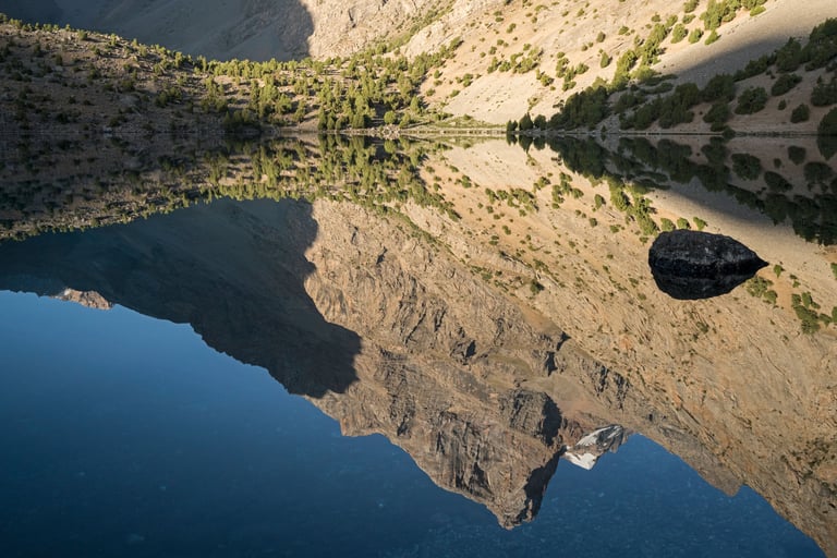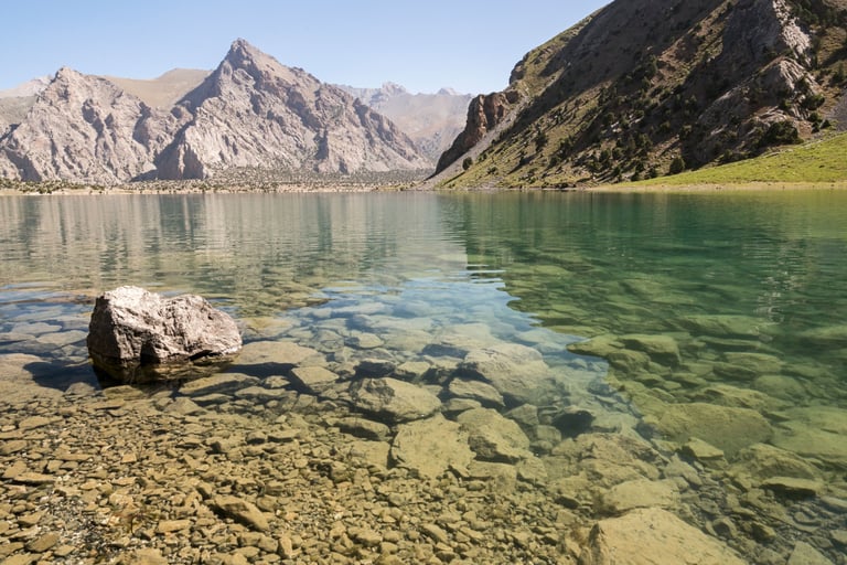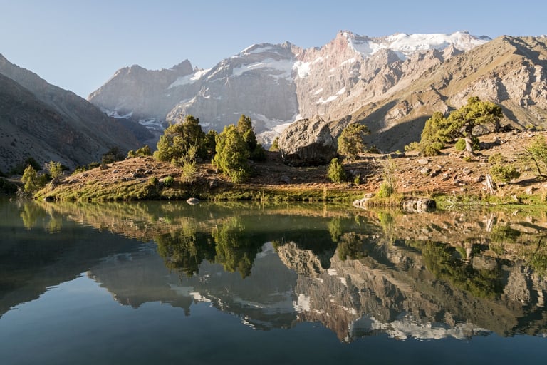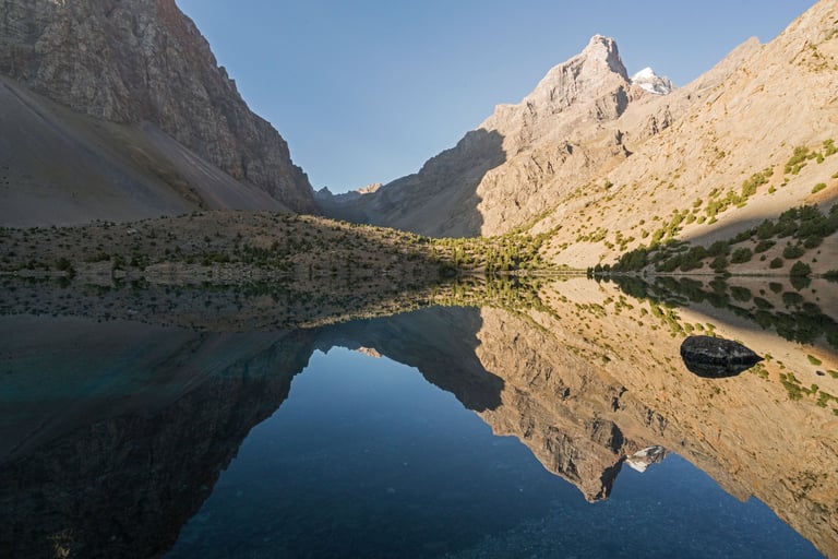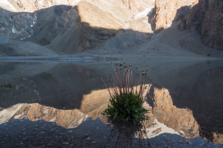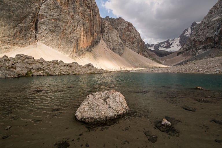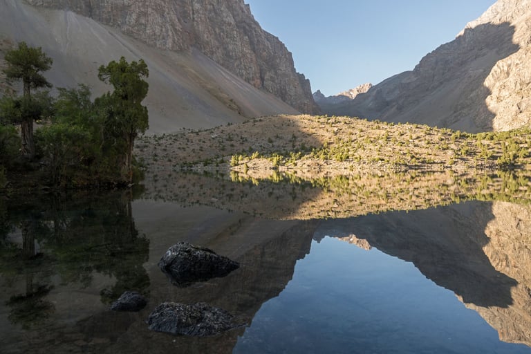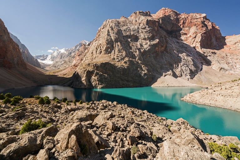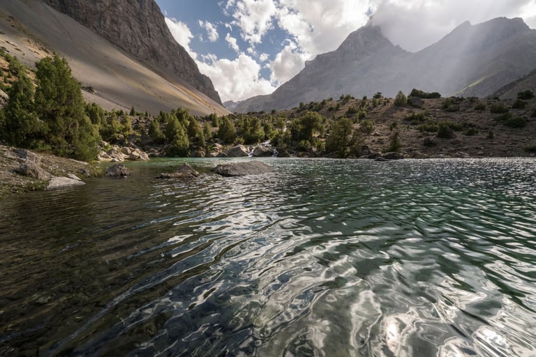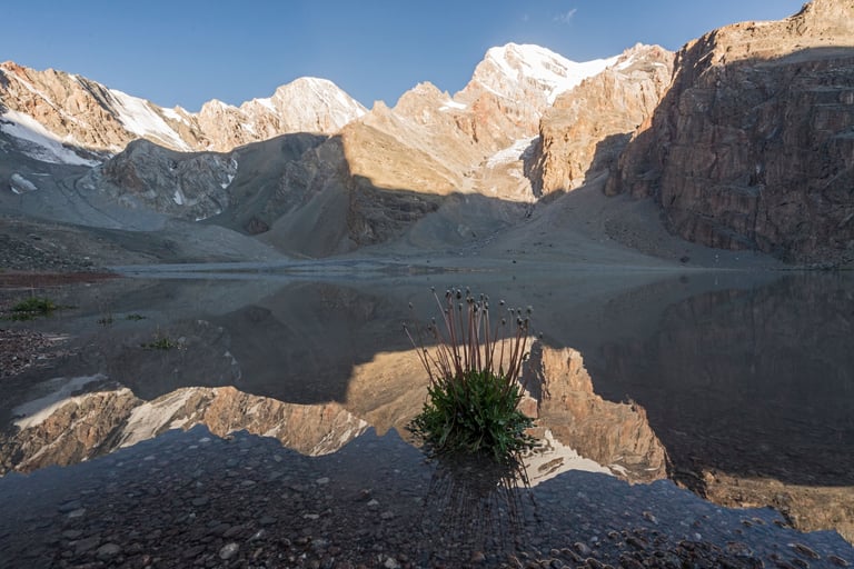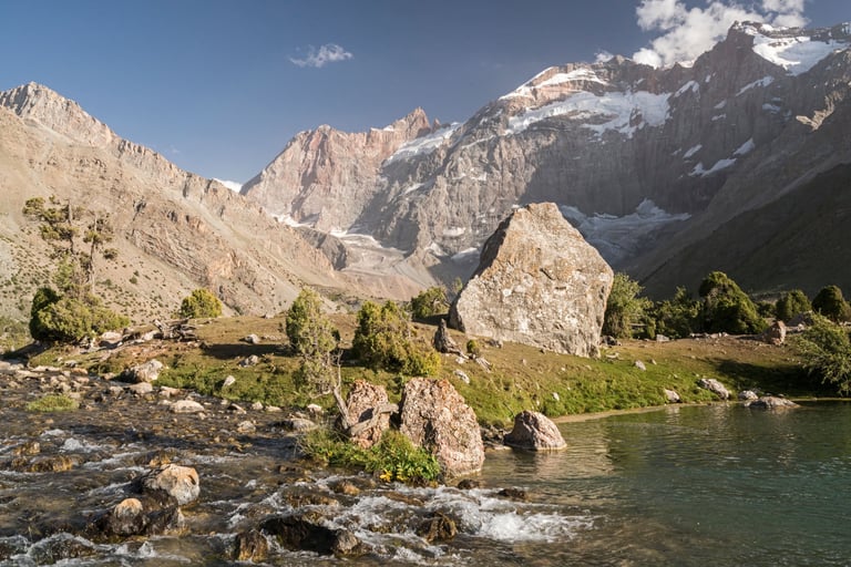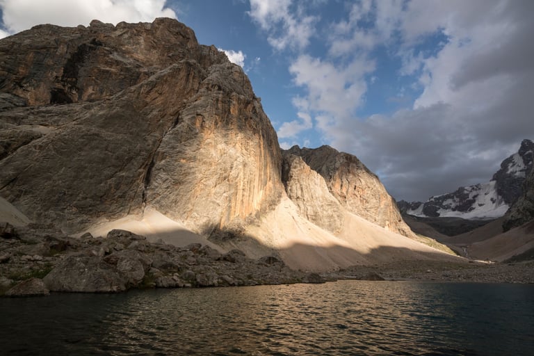 The Fan Mountains (Fany) are a mountain node in the southwest of the Pamir-Alai system in Tajikistan. They are a popular destination for trekking and mountaineering due to their accessibility and unique nature. The highest point: Chimtarga Peak (5489 m). The region is famous for dozens of high-mountain reservoirs with water of different shades - from turquoise to emerald. The most famous: Iskanderkul, Alaudin, Kulikalon, Big Allo and Muddy Lakes.