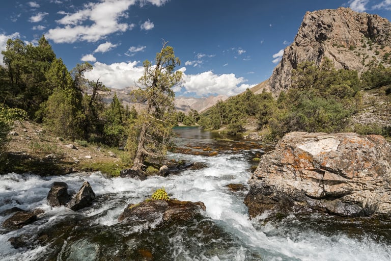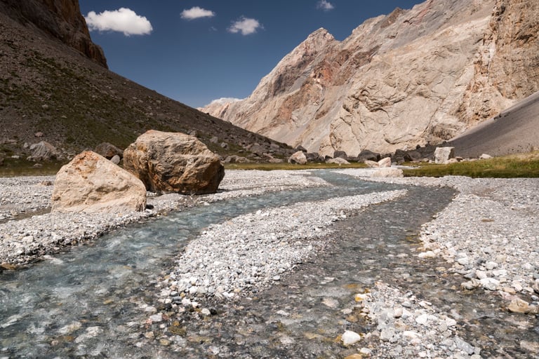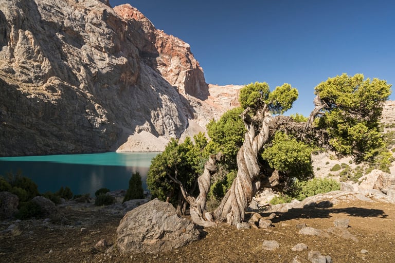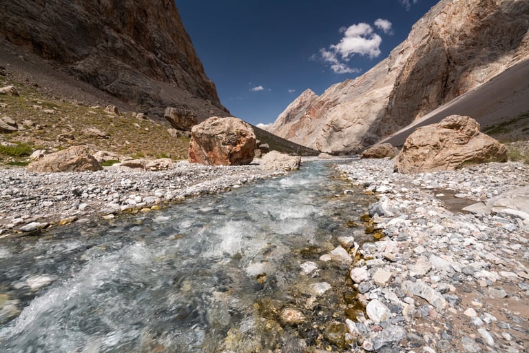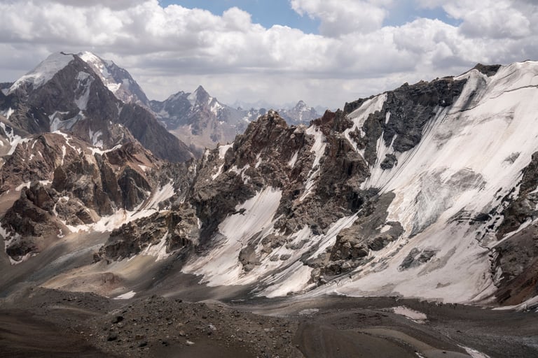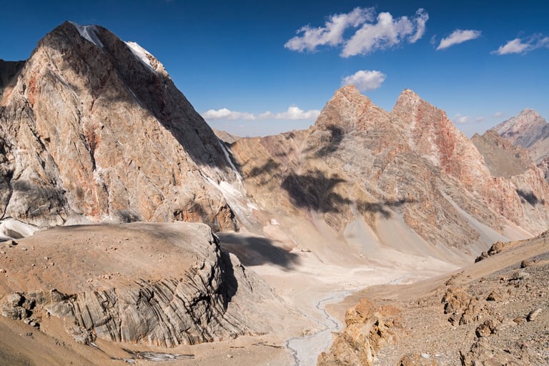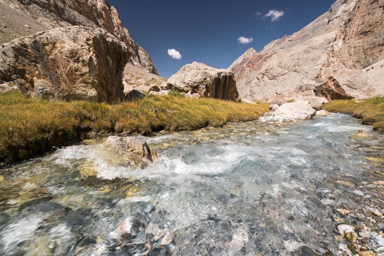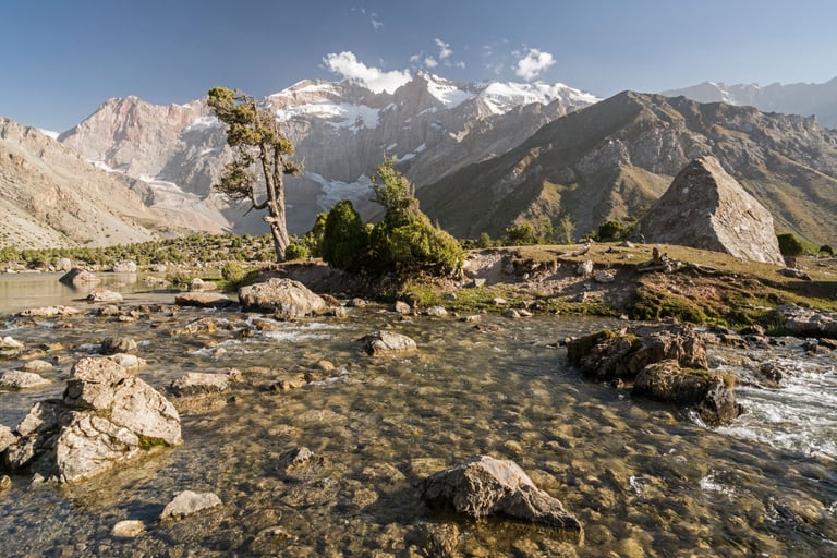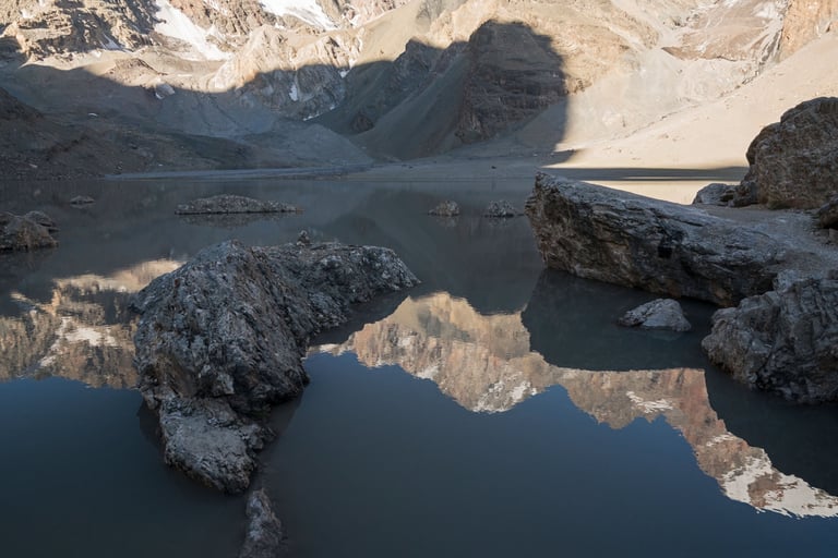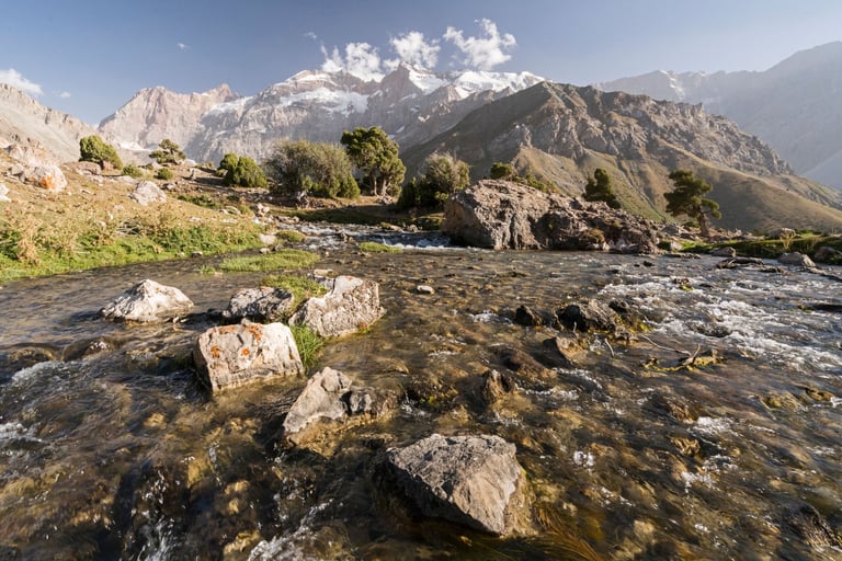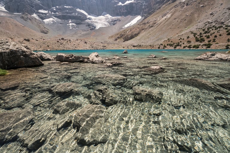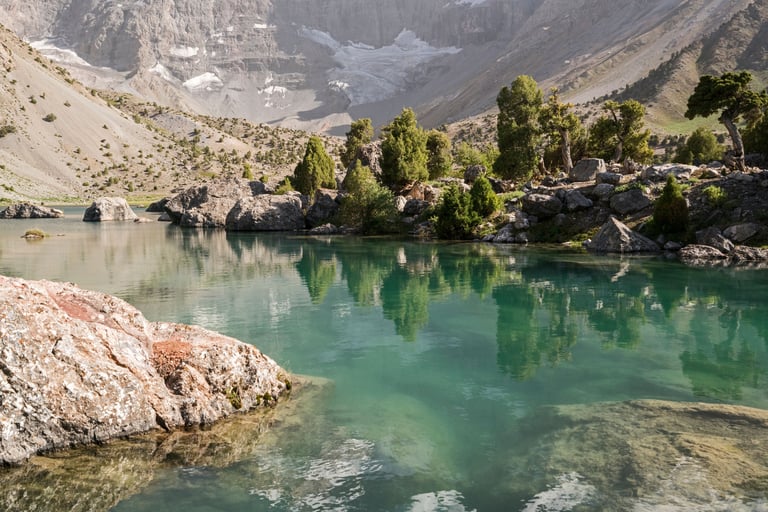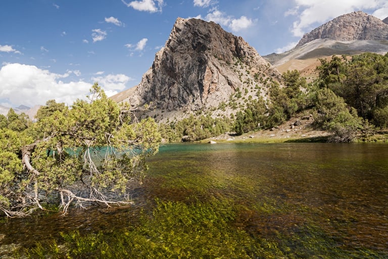 The Fan Mountains (Fany) are a mountain node in the southwest of the Pamir-Alai system in Tajikistan. They are a popular destination for trekking and mountaineering due to their accessibility and unique nature. The highest point: Chimtarga Peak (5489 m). The region is famous for dozens of high-mountain reservoirs with water of different shades - from turquoise to emerald. The most famous: Iskanderkul, Alaudin, Kulikalon, Big Allo and Muddy Lakes.